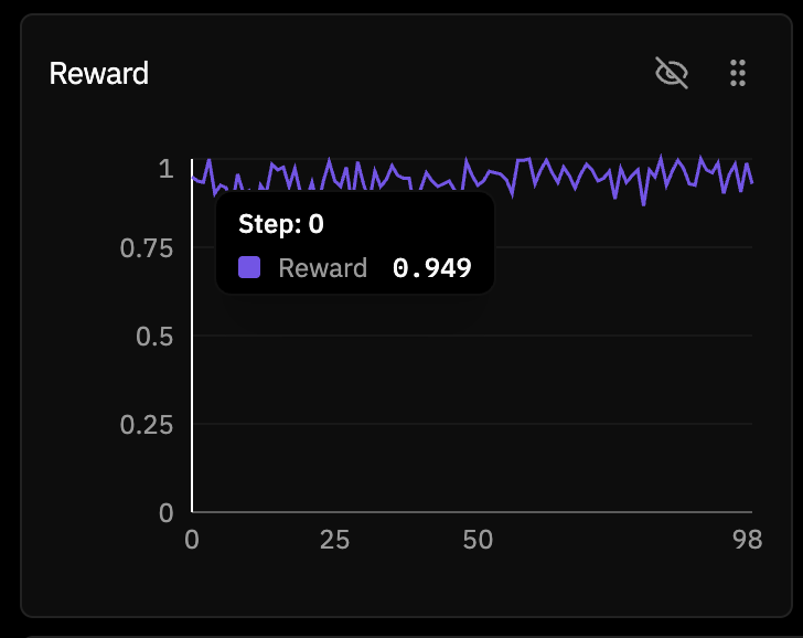 The reward curve, though, told a much more subtle story. It started at 0.949 on step 0.