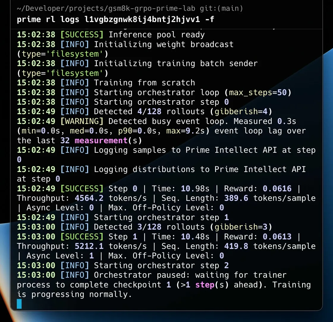 prime rl run configs/rl/gsm8k.toml