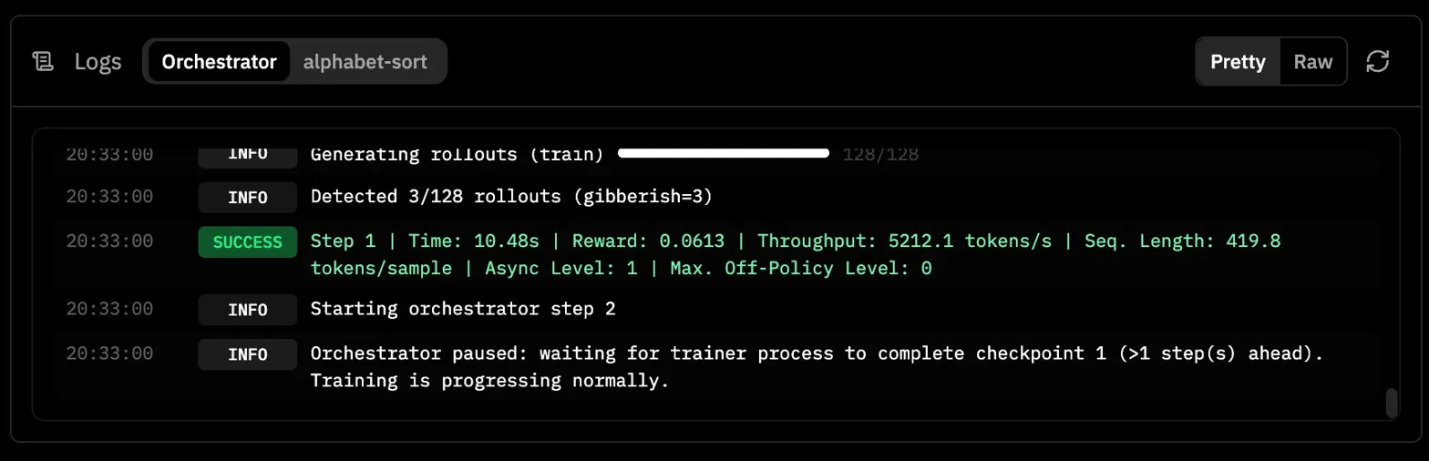 Before jumping to GSM8K, I tried the alphabet sort environment using a very small model, meta-llama/Llama-3.2-1B-Instruct. On paper it felt like a nice starter experiment. In practice it failed almost immediately.