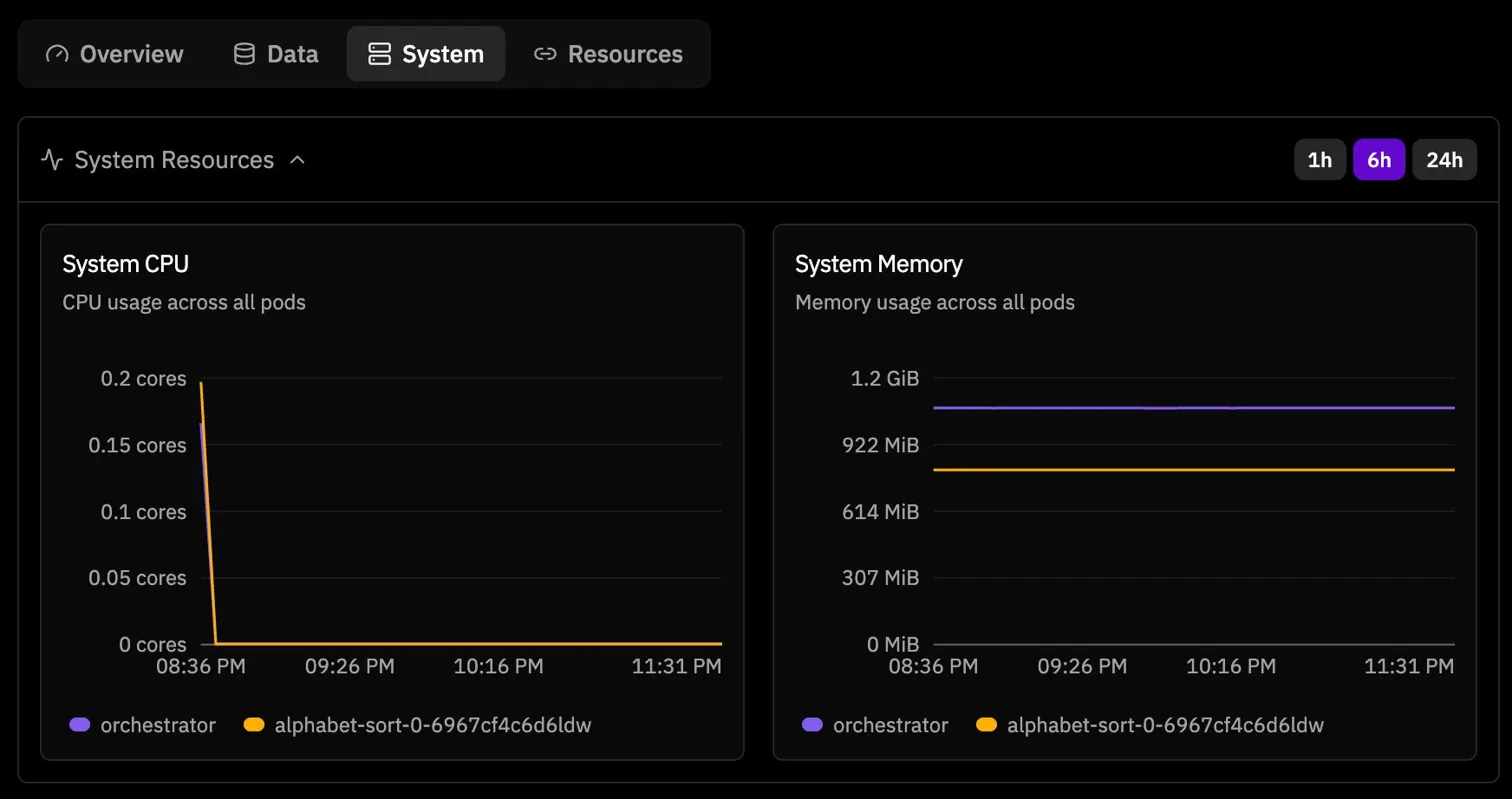 At that moment I honestly suspected some hosted training pipeline issue. The run looked alive but not productive. Then the system metrics made the stall even more obvious. CPU dropped to zero while memory stayed allocated, which is exactly the kind of screenshot that makes you stare at the dashboard and wonder if the model is learning or just existing.